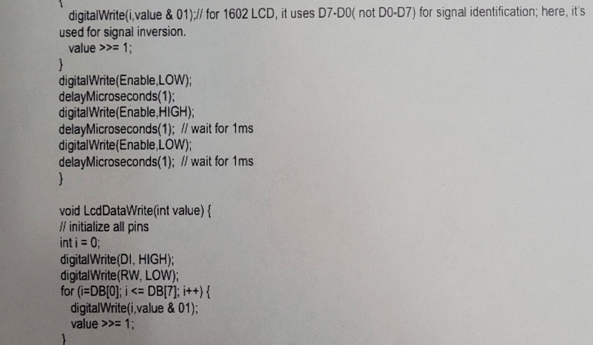 Like I said, I'm not completely happy with the results. There are weird underscores (lines?) at the end of each second line on the display. I am really not sure how I made this happen, (it wasn't like that when I ran the original code. C'est la vie. I altered a couple of things in the code, especially the message that was displayed and figured what a couple of things in the code controlled including how to get the text to appear on the first and second line. The first build that I made didn't work too well. The potentiometer was correctly adjusting the contrast of the screen, but no message was displayed. I moved stuff around, but in the end decided to start from scratch and be especially careful how I put things to together. All's well that ends well!